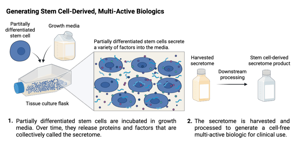 A multi-active biologic is a therapeutic that includes multiple factors that can influence a variety of biological pathways. Unlike traditional drugs that typically target only one specific cell component, multi-active biologics can engage several signaling complexes simultaneously, including those of the immune system.
